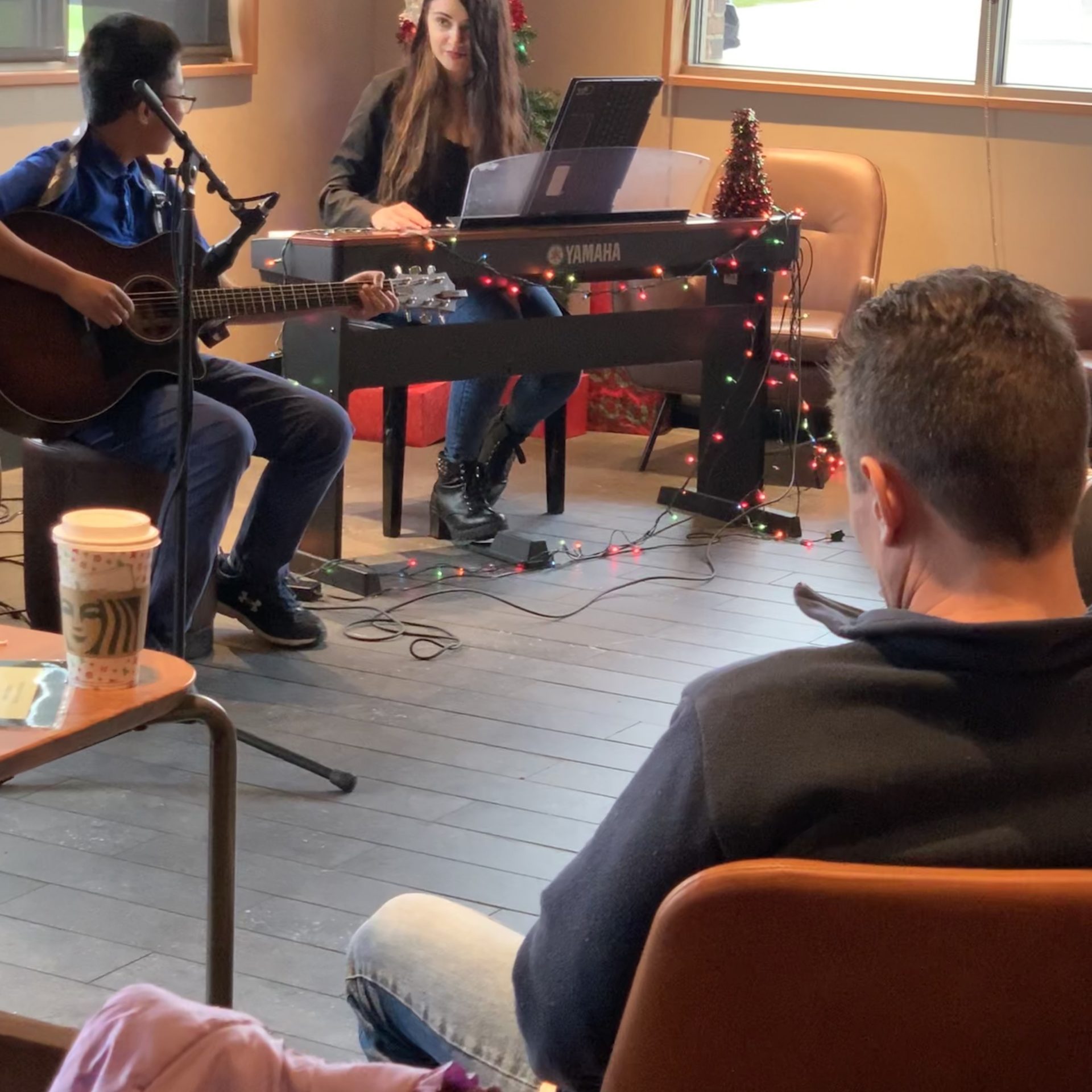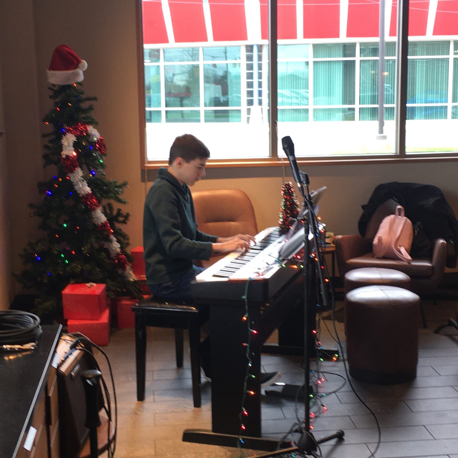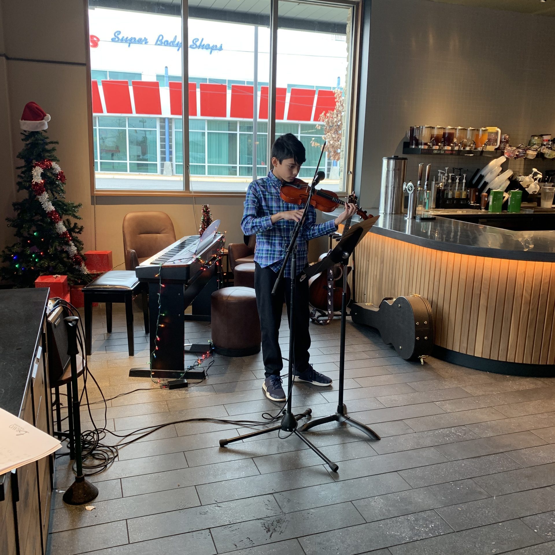 Bravo held its second annual Christmas recital at Starbucks over the weekend! Students performed holiday selections and contemporary pieces on piano, guitar, violin, and voice in front of a busy audience of coffee-lovers. Everyone did a wonderful job and we are so proud of our students! Check out the pictures below!